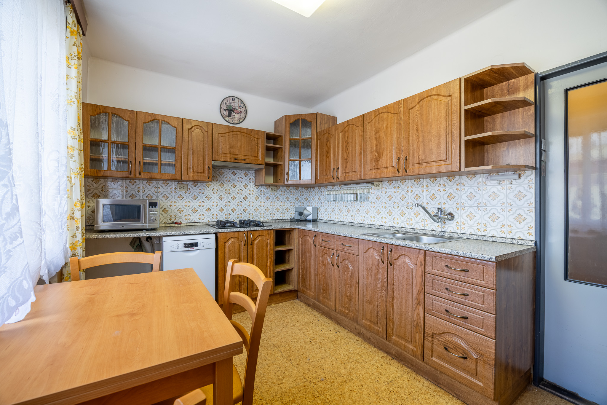 Dispozice bytu zahrnuje tři neprůchozí pokoje o velikostech 20,5 m², 14,0 m² a 17,4 m², kuchyň o výměře 10,5 m², předsíň, koupelnu, samostatné WC a praktickou lodžii. K bytu náleží prostorný sklep. Byt je v původním stavu a je určen k rekonstrukci, což dává novému majiteli možnost upravit si jej zcela podle vlastních představ. Jádro je zděné. Vytápění a ohřev vody zajišťuje vlastní plynový kotel umístěný v bytě.